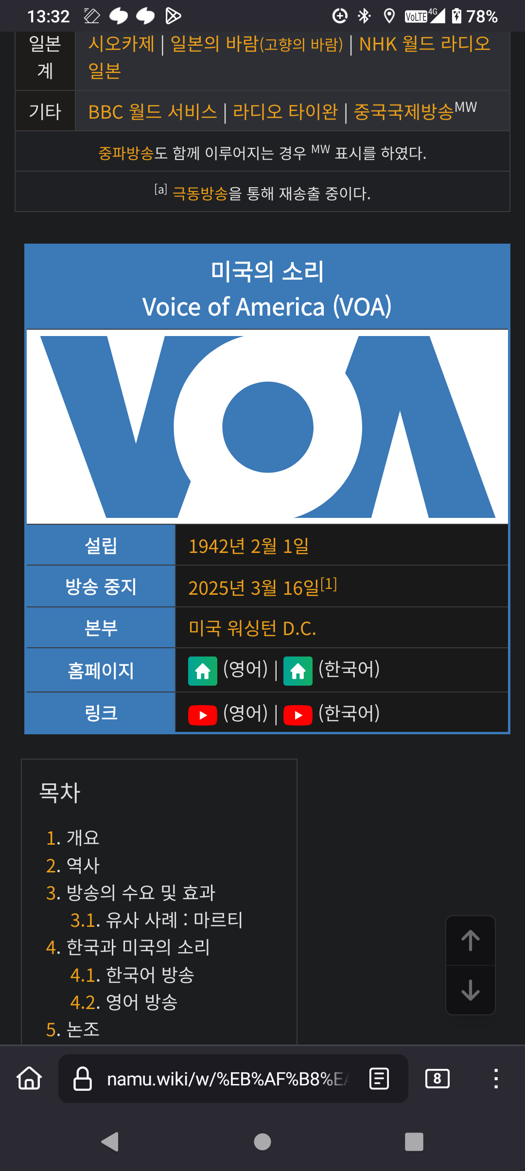 맞는 말이 하나도 없네 트럼프가 VOA를 폐쇠시켰나? = 행정명령으로 직접 사인 VOA 직원을 구조조정시켯나? = 명백한 사실 VOA가 방송을 못하게 되었나? = 네, 83년만에 처음으로 https://biz.chosun.com/international/international_general/2025/03/17/7MNPOOCVJ5D43NTXMOUQ5RMOAQ/ https://m.news.zum.com/articles/96945864 | 25.03.21 14:10 | | |