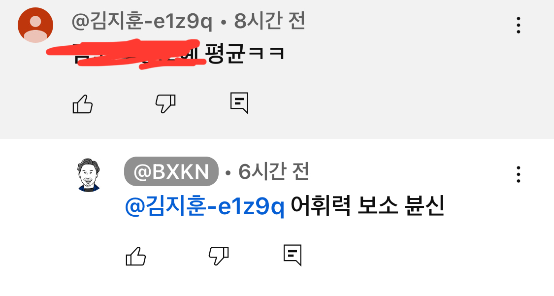 그 영상 8시간 전 댓글.. 이 직전 댓글이 5일전 진짜 댓글다는거 다 보는거임 영상 한두개도 아닌데.. | 25.03.21 17:59 | | |