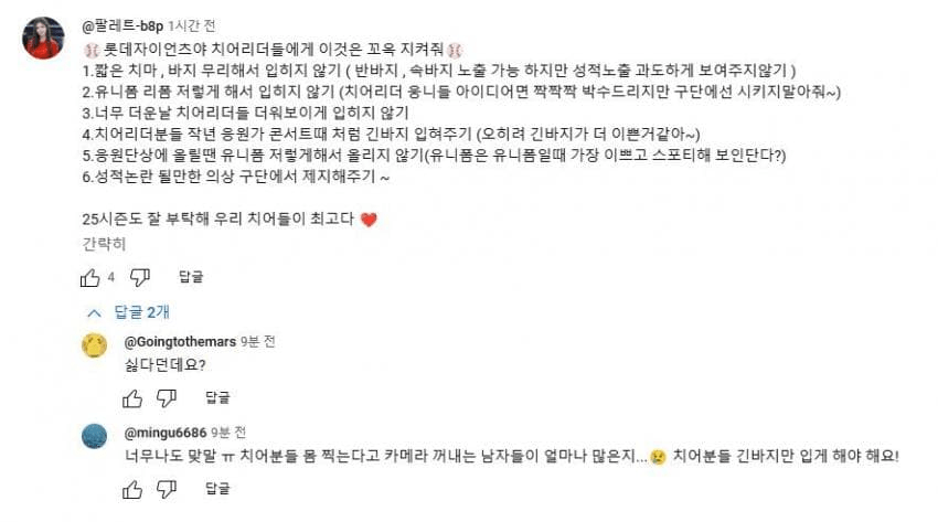 ㅋㅋㅋ 치어리더 유니폼 검열 들어갔더만 온갖 선수 맘들이 지랄할 예정