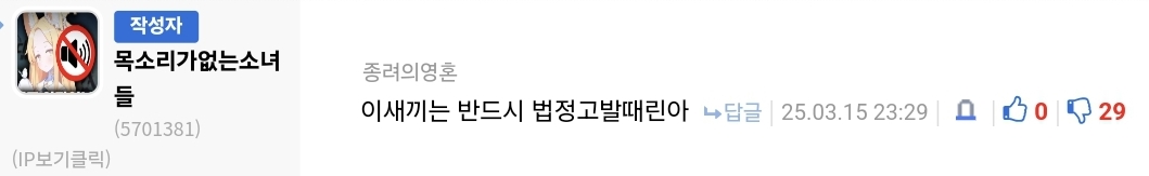 심지어 이번 고소선언은 블랙세이버가 아닌 다른놈임 | 25.03.21 22:36 | | |