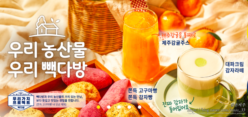 빽다방이 걸린건 요 광고때문일거임 큼직막하게 우리 농산물 적어놓곤 몇몇개는 중국산으로 해서 법에 걸린 상태일거임