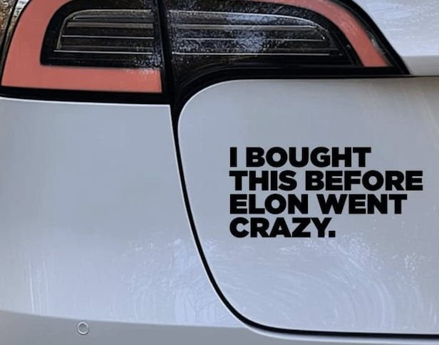 테슬라 차량에는 "일론 머스크가 맛탱이 가기 전에 샀습니다." 라는 스티커가 붙어있더라 ㅋㅋㅋ