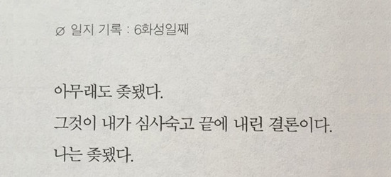 소설 문구 하면 마션이지 ㅋㅋㅋㅋ