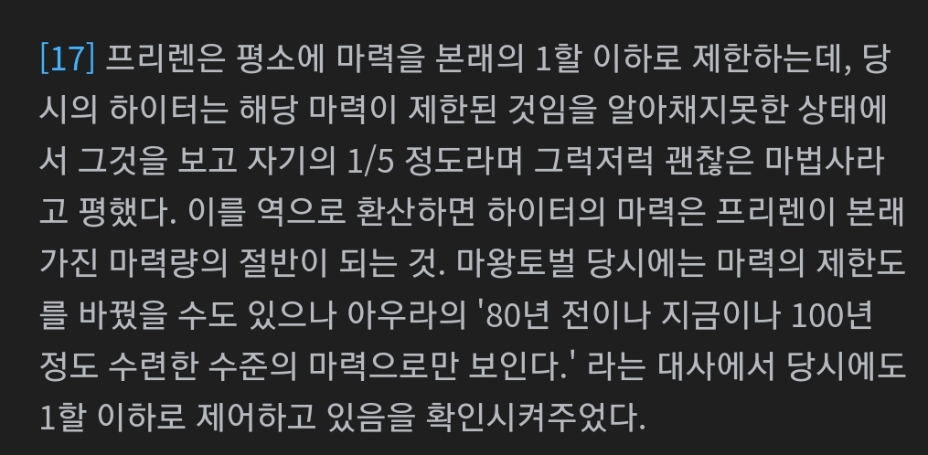 두달동안 무보급, 무산소하면서 억제한 프리렌의 마력의 5배인 하이터