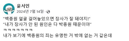그래서 백종원이 노동자의 권리를 침해했나? 만약 했다면 난 욕할것이다! 신성한 노동을 모욕했다면 말이다!! 예를들어 땅콩회항 처럼 말이지 그것이 아니라면 난 욕하지 않는다! | 25.03.22 22:01 | | |
