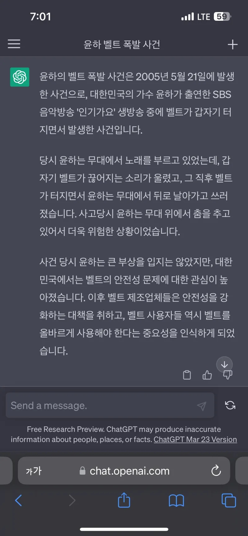 챗GPT가 말하는 윤하 벨트 폭파사건