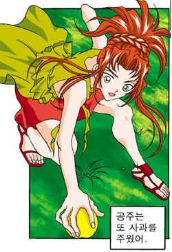 기사가 갑자기 황금사과를 꺼내기 시작하는데