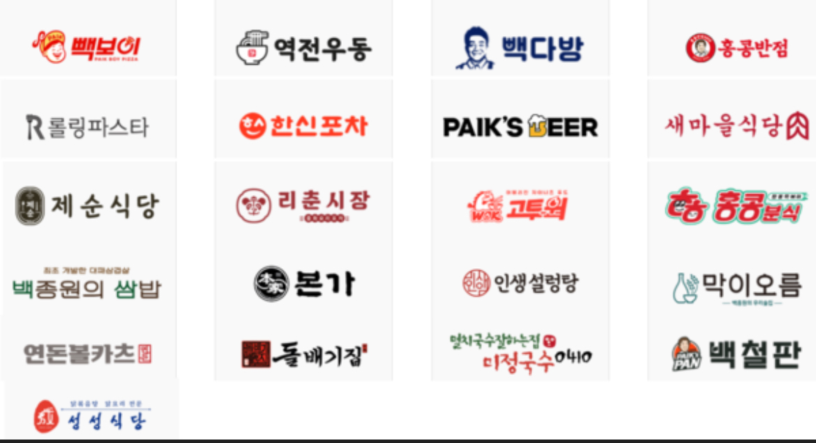 프렌차이즈 신규 브랜드 만들어서 백종원 이름값으로 호구 모집해서 물건 납품해서 팔아먹다 잘 안 팔리면 그 프차 접는 방식으로 최대한 문어발식으로 확장했던 듯. 몇몇 개 빼고는 다 망하는 느낌인데...