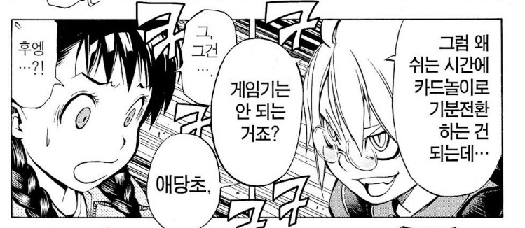 고수 선생이었으면 여기서 "네 말이 맞구나. 앞으론 카드놀이도 금지다." 하면 카드로 잘 놀던 애들이 쟤는 왜 나대서 일을 이지경으로 만드냐고 공격했음