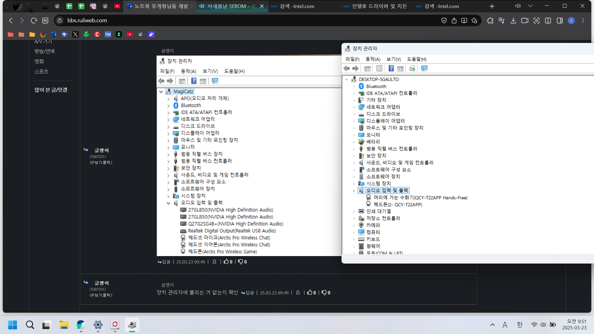 인텔지원홈페이지에서 윈11용 리얼텍 지웠다 설치해도 장치관리자에 오디오가 아예 안뜨네요 ㅠㅠ | 25.03.23 09:45 | | |