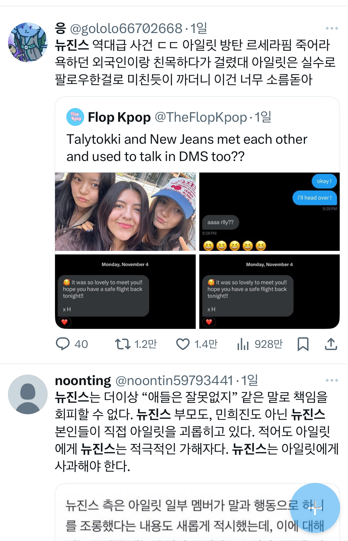 저거 토끼단애들 보면서 느낀건데 요즘엔 저러고 사이코짓할라면 무조건 적반하장으로 우겨야된다는거 느낌 언플은 지들이 미친넘들처럼 존나게 하면서 하이브가 언플 존나하네 맨날 이소리하고