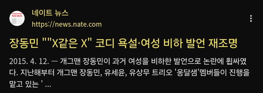 뭐 솔찍히 장동민도 말 함부로 하긴함. 사람이 좋아서 이슈가 안되는거 뿐이지 | 25.03.24 08:58 | | |