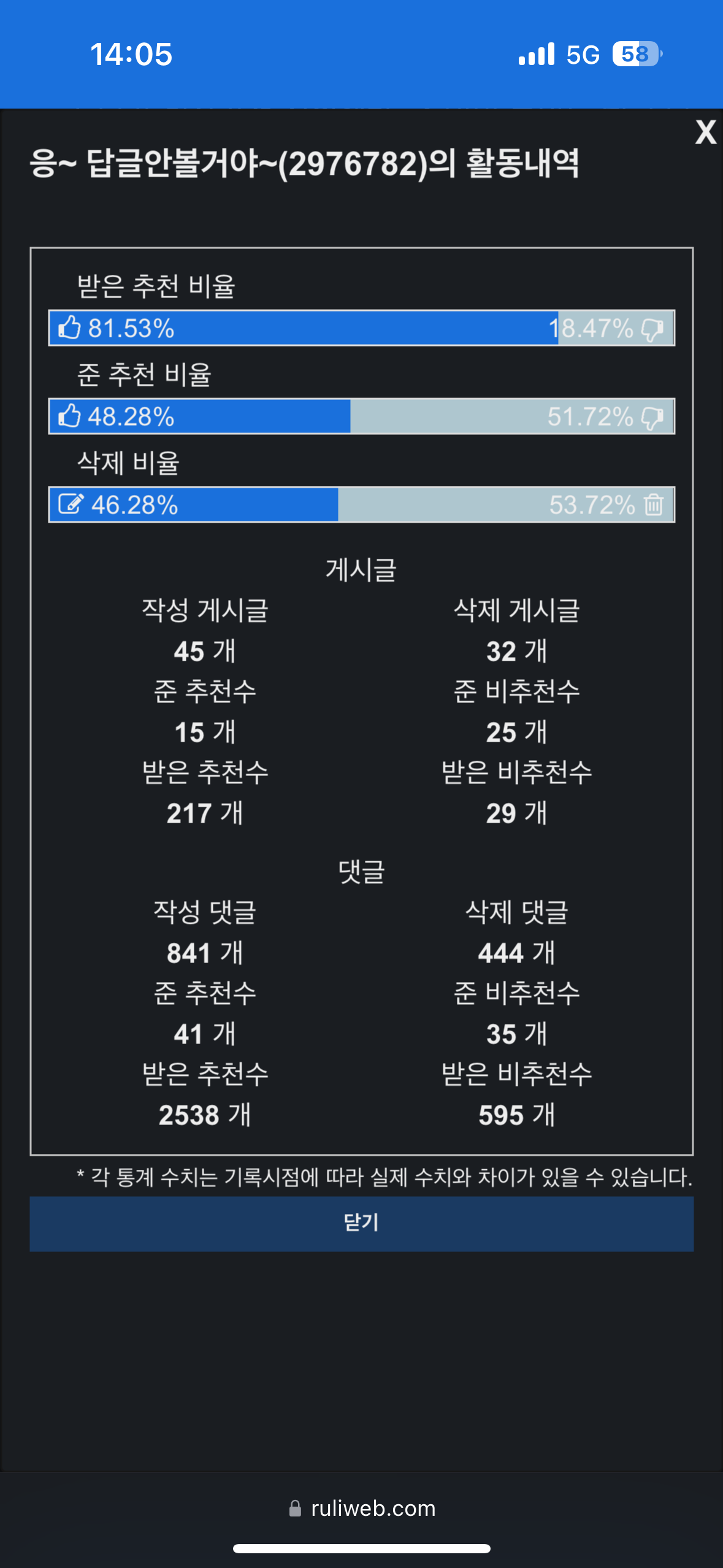 활동내역 보면 누구라도 니가 아픈 것 같은데? 괜찮아? 혹시 이 세상이 모든게 니 말이 맞다고 생각하능것니? 그러면 니 말이 맞으니깐 칼들고 집 밖으로 나오지 마렴 알겠지? | 25.03.24 14:06 | | |