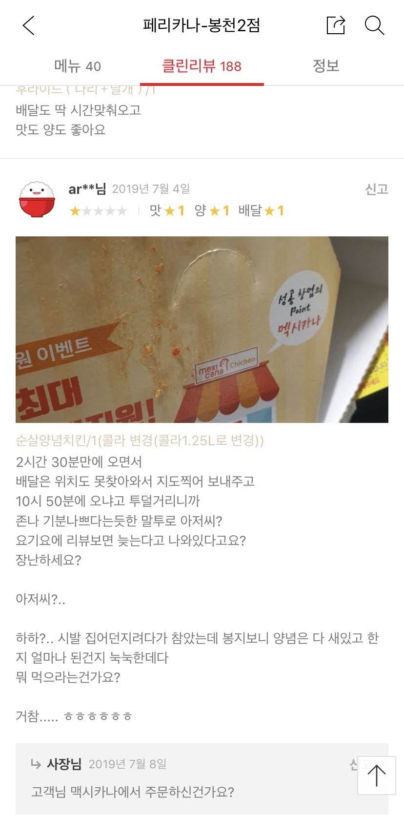 페리카나 맥시카나 연속으로 시켜 먹고 잘못 단거 아닐까 | 25.03.24 15:34 | | |