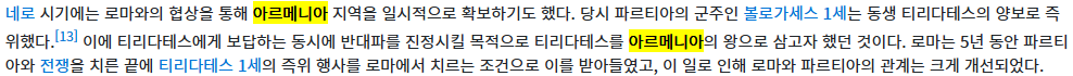 사실 아르메니아도 파르티아 방계 국가인데 로마가 자기랑 친한 왕족을 올려서 괴뢰국으로 쓰고 있던거 정상화시킨거래.