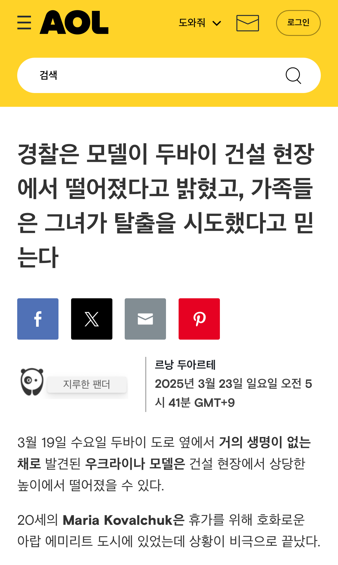 카이지는 아닐꺼고, 아마 높으신 분이 엮여 있어 두바이 경찰이 쉴드치는 거라 생각함 변명할 거리가 공사장밖에 없으니 저리 이상해진거지 | 25.03.24 19:40 | | |