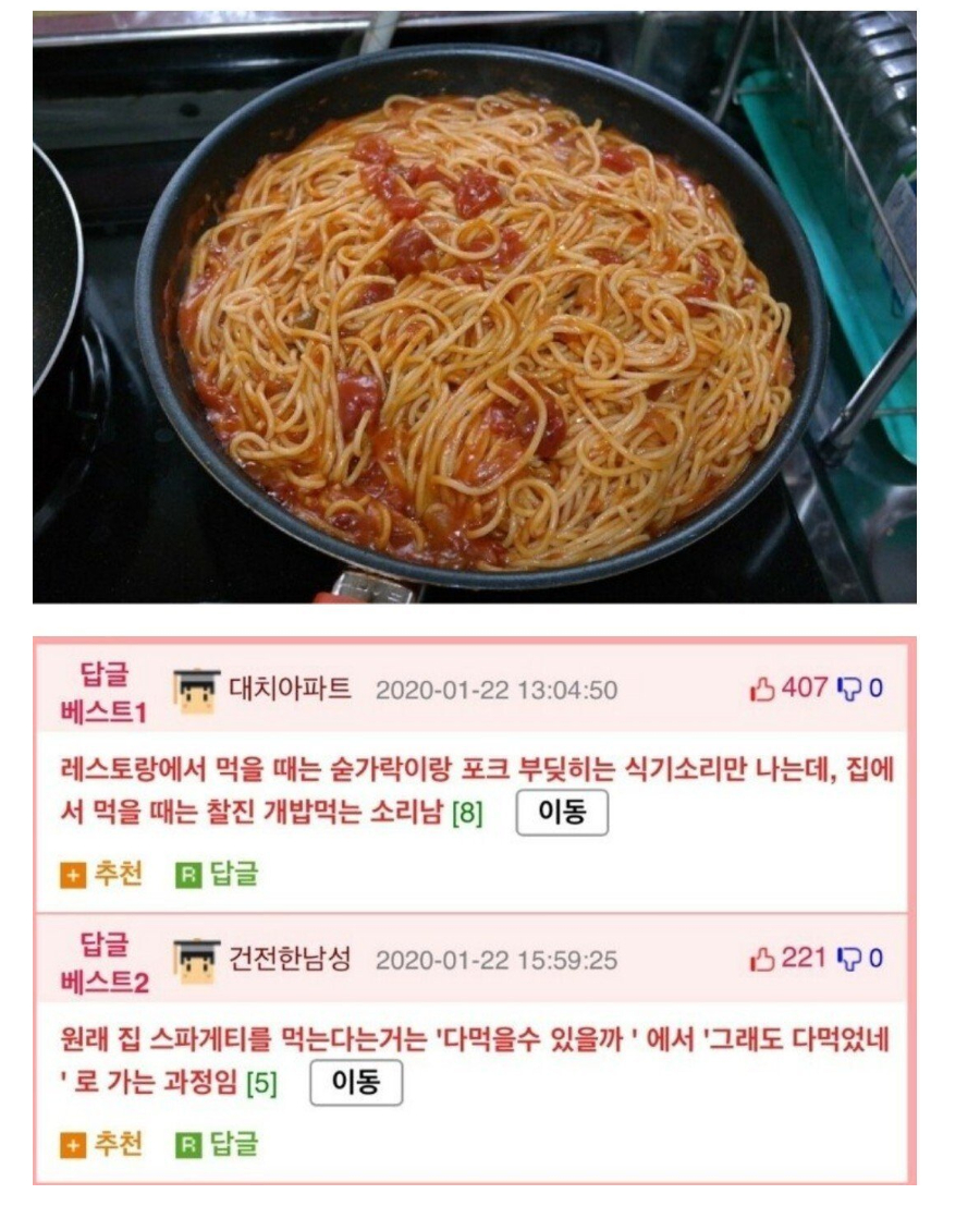 집에서 먹으면 적은가? 하고 만들다가 많은데? 하고 소스랑 볶다가 모자란데... 하고 입맛 다시는거지 | 25.03.24 20:59 | | |