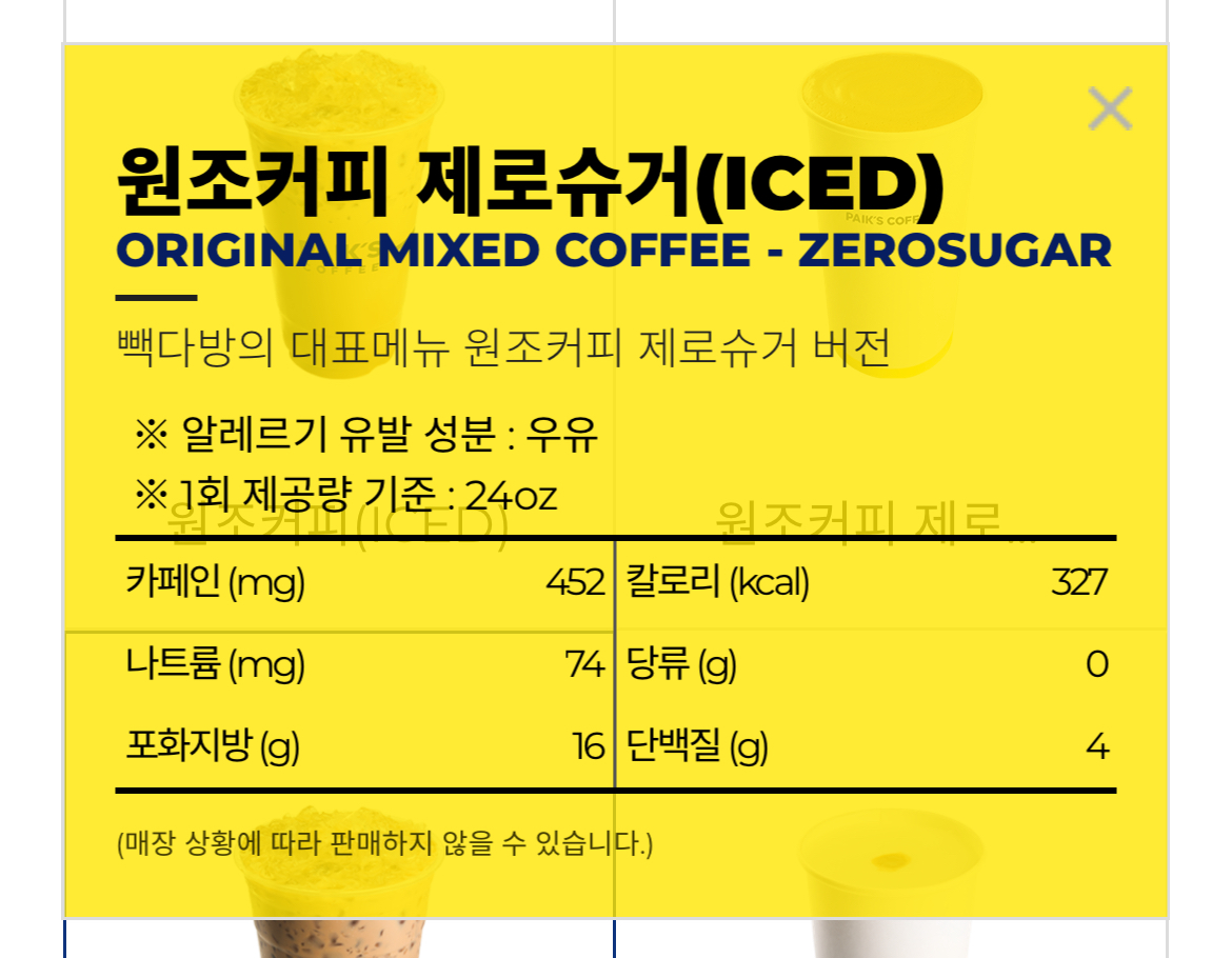 백다방 제로슈거 칼로리랑 포화지방 보면 이런건 제로슈거라고도 붙여서는 안됨ㅋㅋㅋ