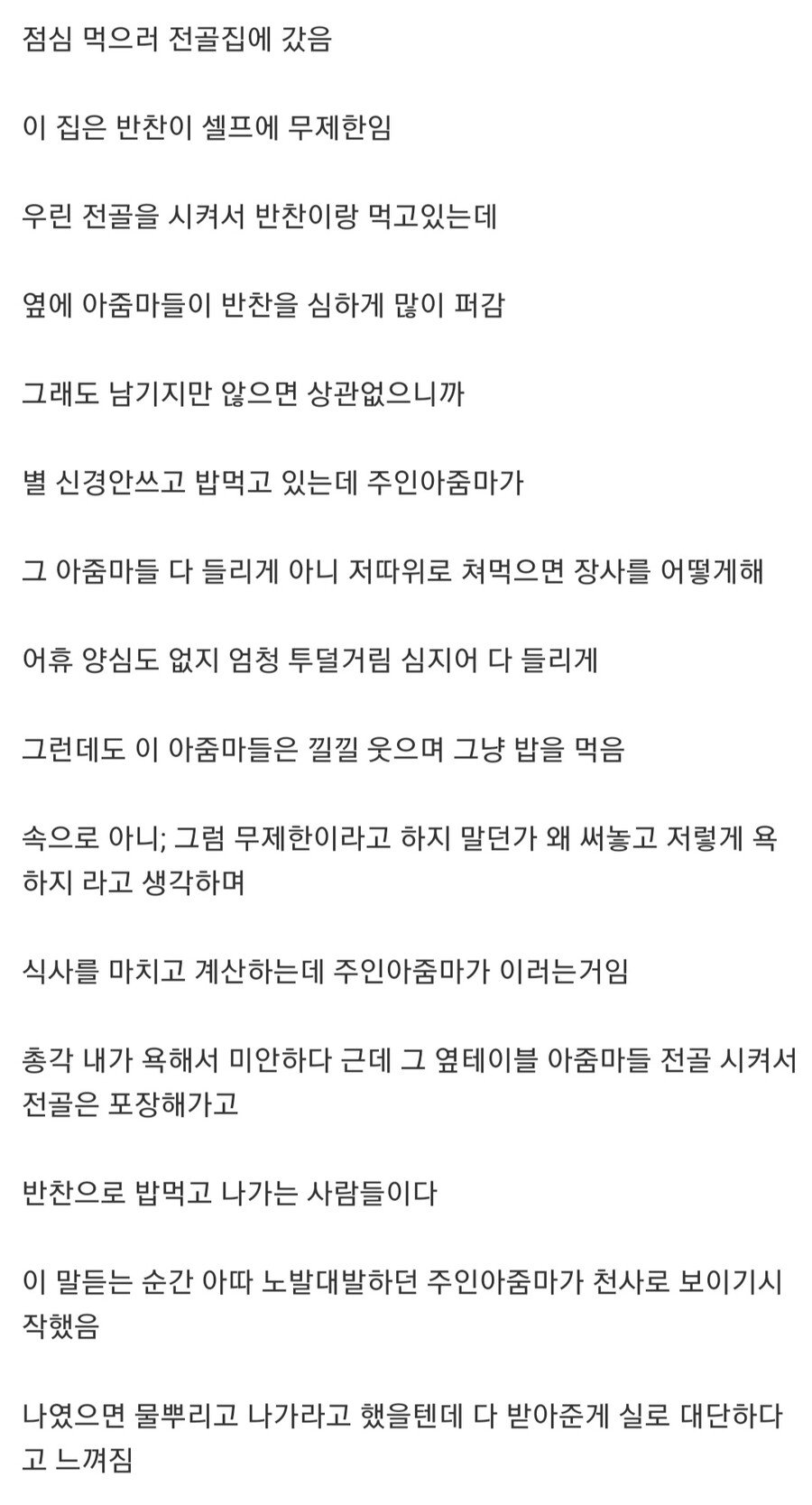 음식포장해가면서 밥은 먹고가는 건 또 첨보네 ㅆㅂ