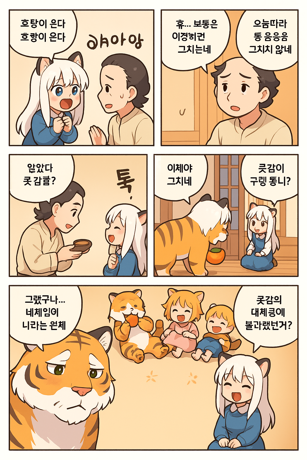 호랑이 들어와요 같은 그림체로 그려달라해봄
