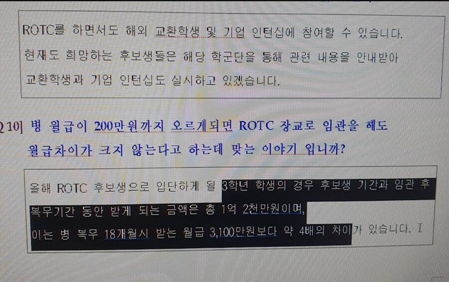 국방부: 미필 여러분들! rotc에 입단하면 1억2천만원을 받게됩니다! 어서 지원하세요!
