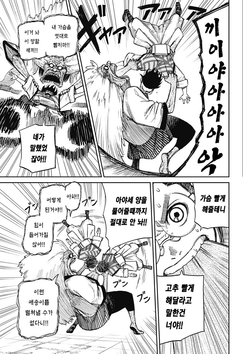 이게 바로 그 유명한 할미 젖 주제에! 할미 젖 주제에! 날날이 꼴려지고 말이야!! 만화구나.