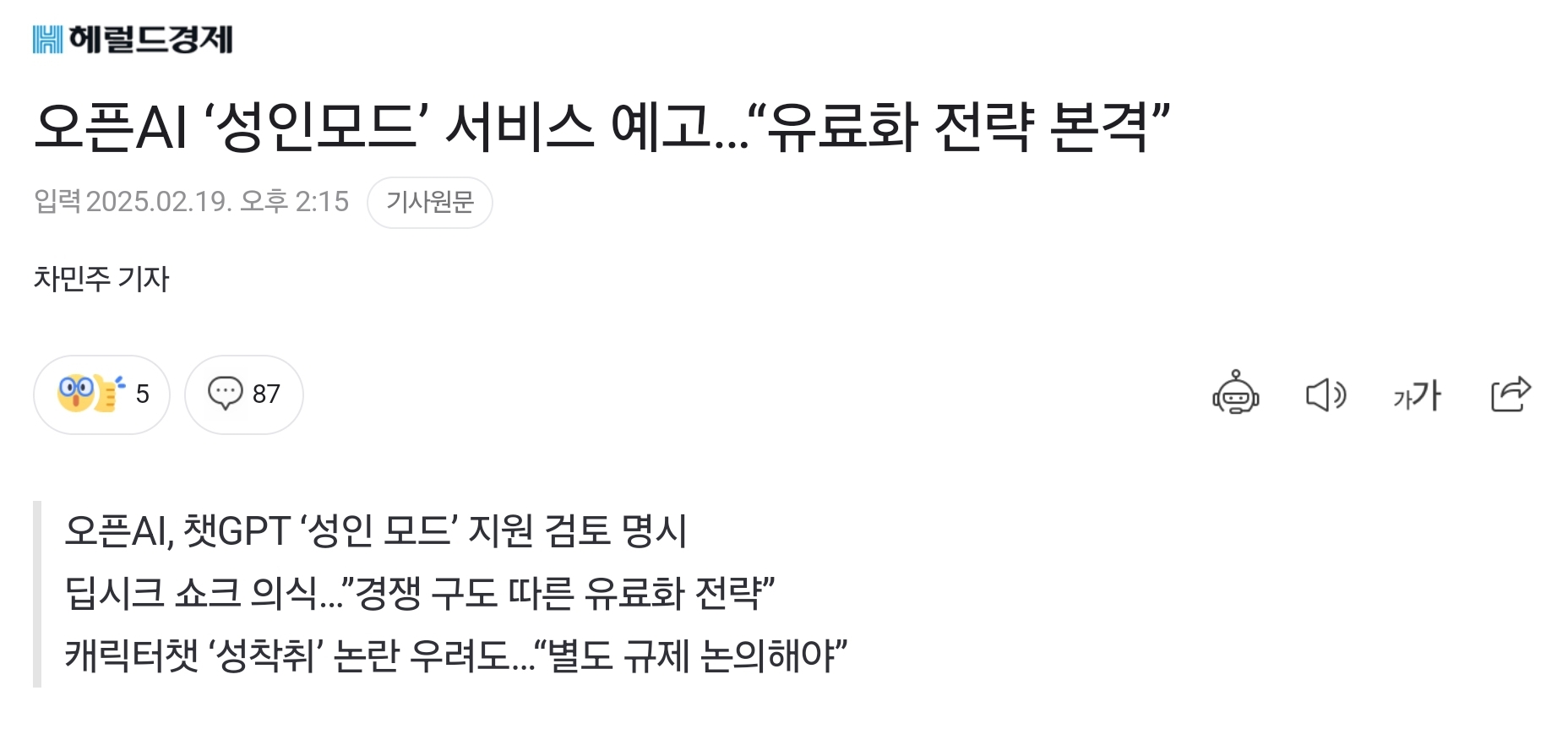 지금 예전 gpt에 비해 검열 풀린상태이고 조만간 성인모드 지원한다고 공식적으로 얘기했었음 그리고 상반기에 gpt5 넘어간다고 했으니까 아마 여름쯤 되면 뭔가 일어날듯