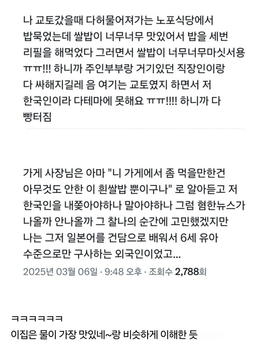 아니 쌀밥 발언하고 분위기 싸해졌다자나. | 25.03.27 10:25 | | |