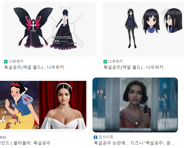 흑설공주 검색하면 원래는 예쁜 애니 캐릭터가 나왔는데 슬금슬금 자리를 침범당하고 있어