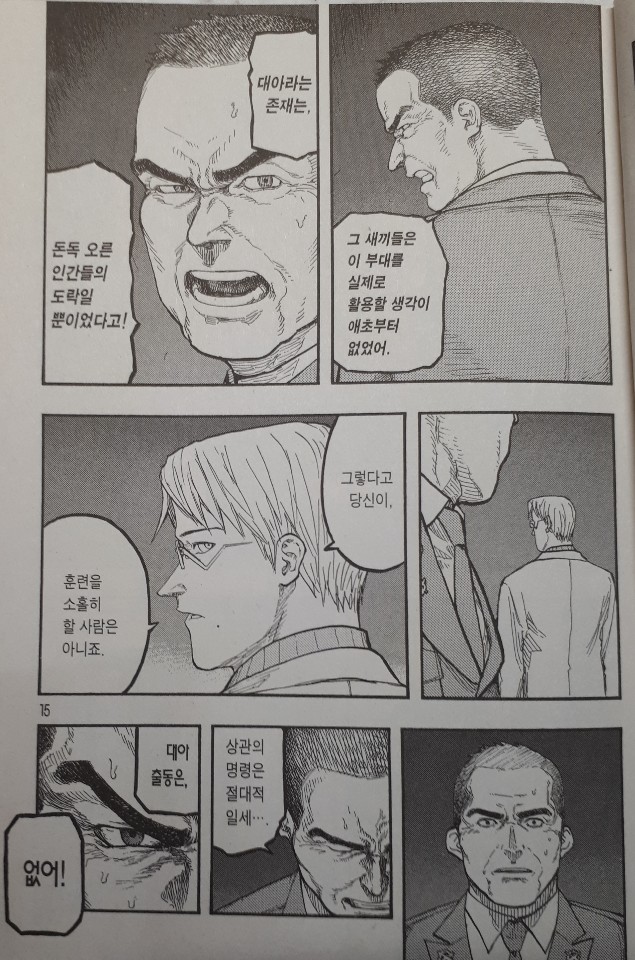 "그렇다고 훈련을 소홀히 할 사람은 아니죠" 대아 출동하면 우리들 큰일난다고 총을 들이대며 막지만 그럼에도 출동 시키고 총을 쏴도 결국 빗나가게 쏘는 장면 멋졌지 그리고 진짜로 대아가 군사기지 턴 아인들 막아내고 기절한 사토도 완벽하게 마취,냉동 시켜서 사건 마무리도 짓지 깔껀 까지만 그럼에도 진심으로 지키기 위해 싸우는 사람들이 가져오는 뽕맛이 좋지