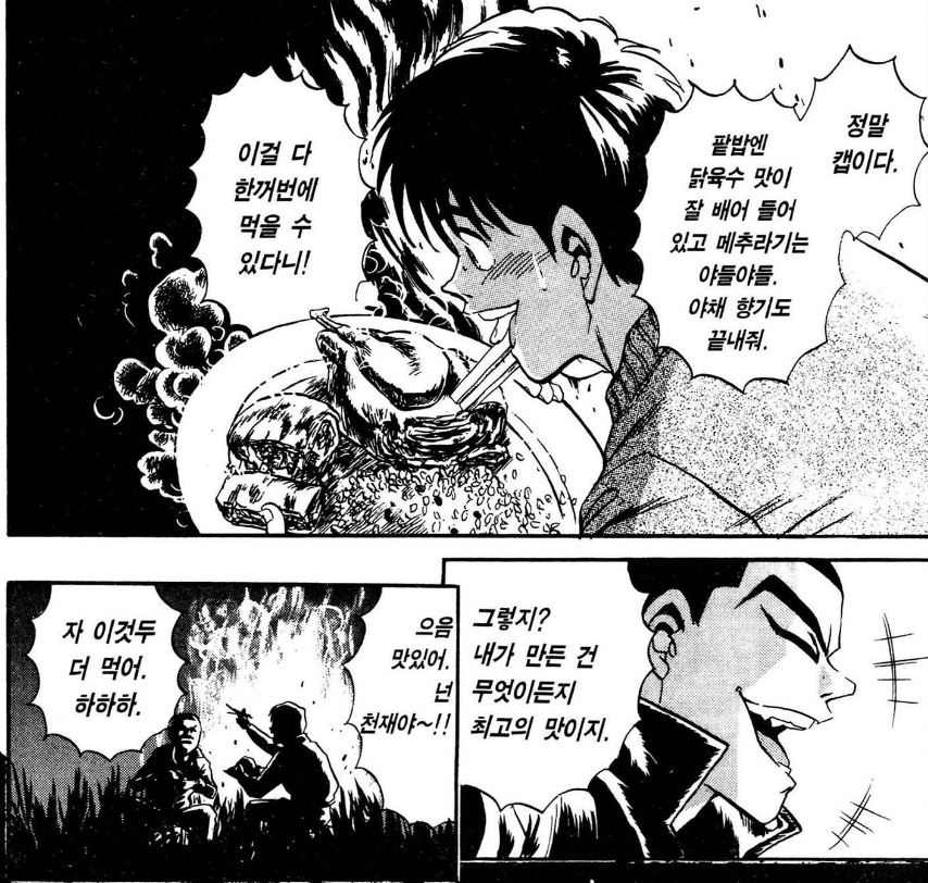 중국가서 수행 하고 온 2부 가면 꼼수 없이 순수 실력으로 다 발라버릴 정도로 성장해버린데다 다들 짱의 실력 자체는 부정안하다보니까 그냥 입이 좀 험한 요리사가 된 느낌이었지 심지어 그떄는 먼저 차에 치이고 노트랑 요리도구 강탈당한 순수 피해자였고 ㅋㅋ | 25.03.27 21:43 | | |