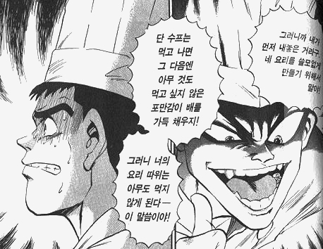 초밥왕 같은 만화였으면 상종못할 쓰레기 취급이었을 것이다 하지만 저 만화에선 저녀석 인성은 의외로 중상위권은 된다