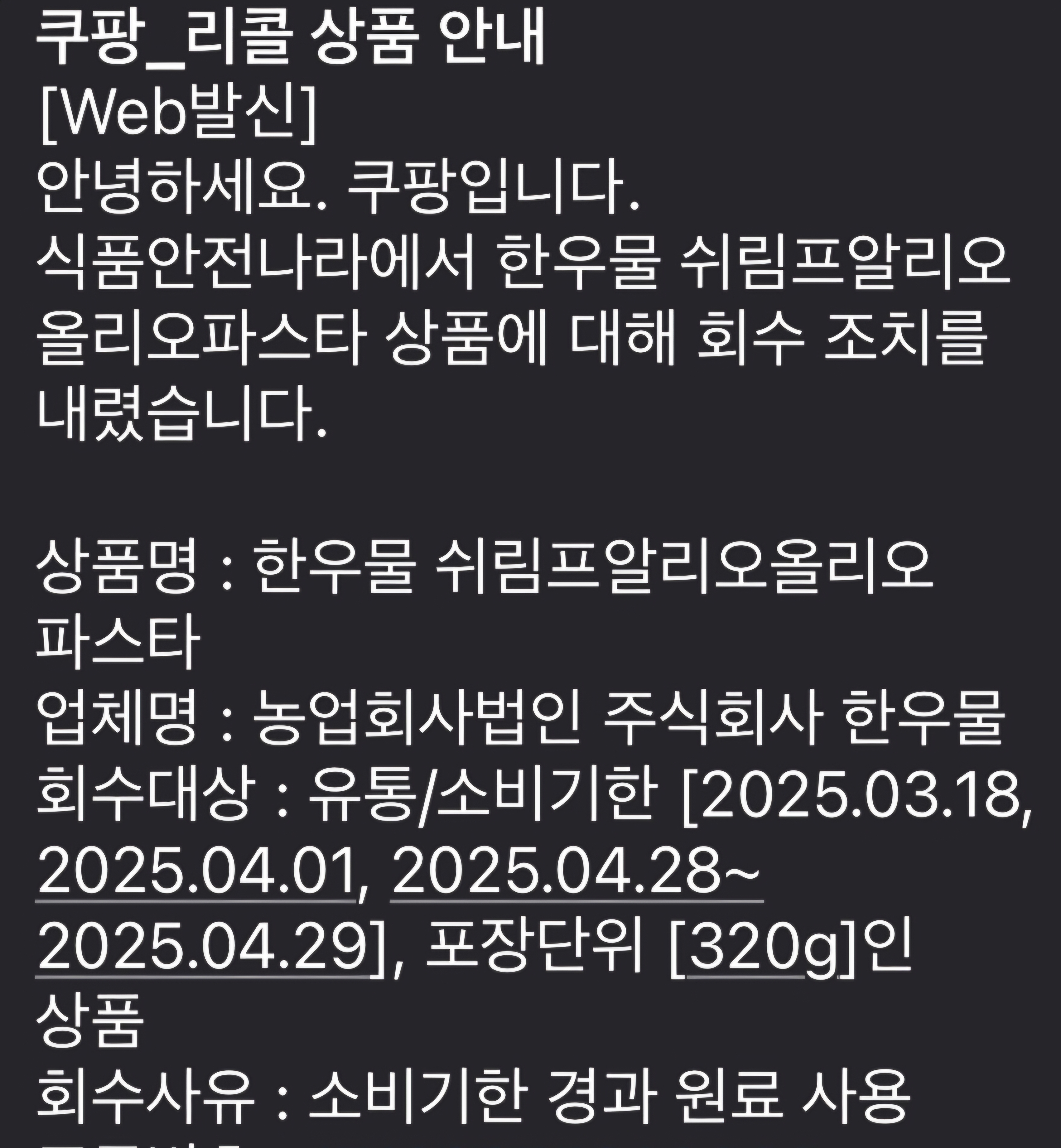 나름 인지도 쌓기 시작한 중소기업일텐데 저런거 하나 터지면.... 예전에 칼국수면 등 밀가루 가공 제품 많이 만드는 중소시업 제품도 위생 문제 한번 이슈된적 있었는데 그 뒤로 그 기업거 안사먹음;;