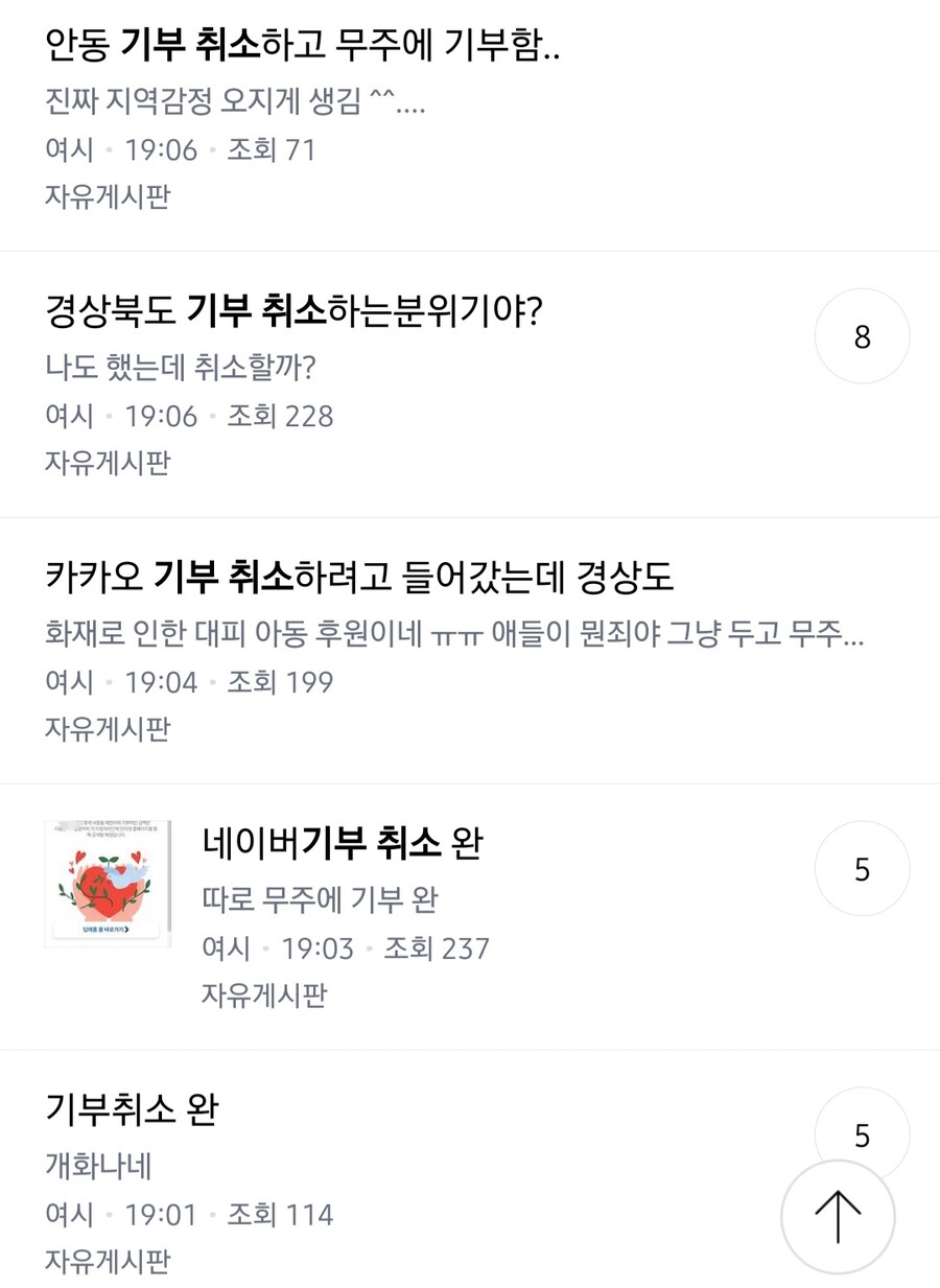 여시특) 기부 연예인 줄지어놓고 sns테러, 경상도 기부 취소운동 하는 곳