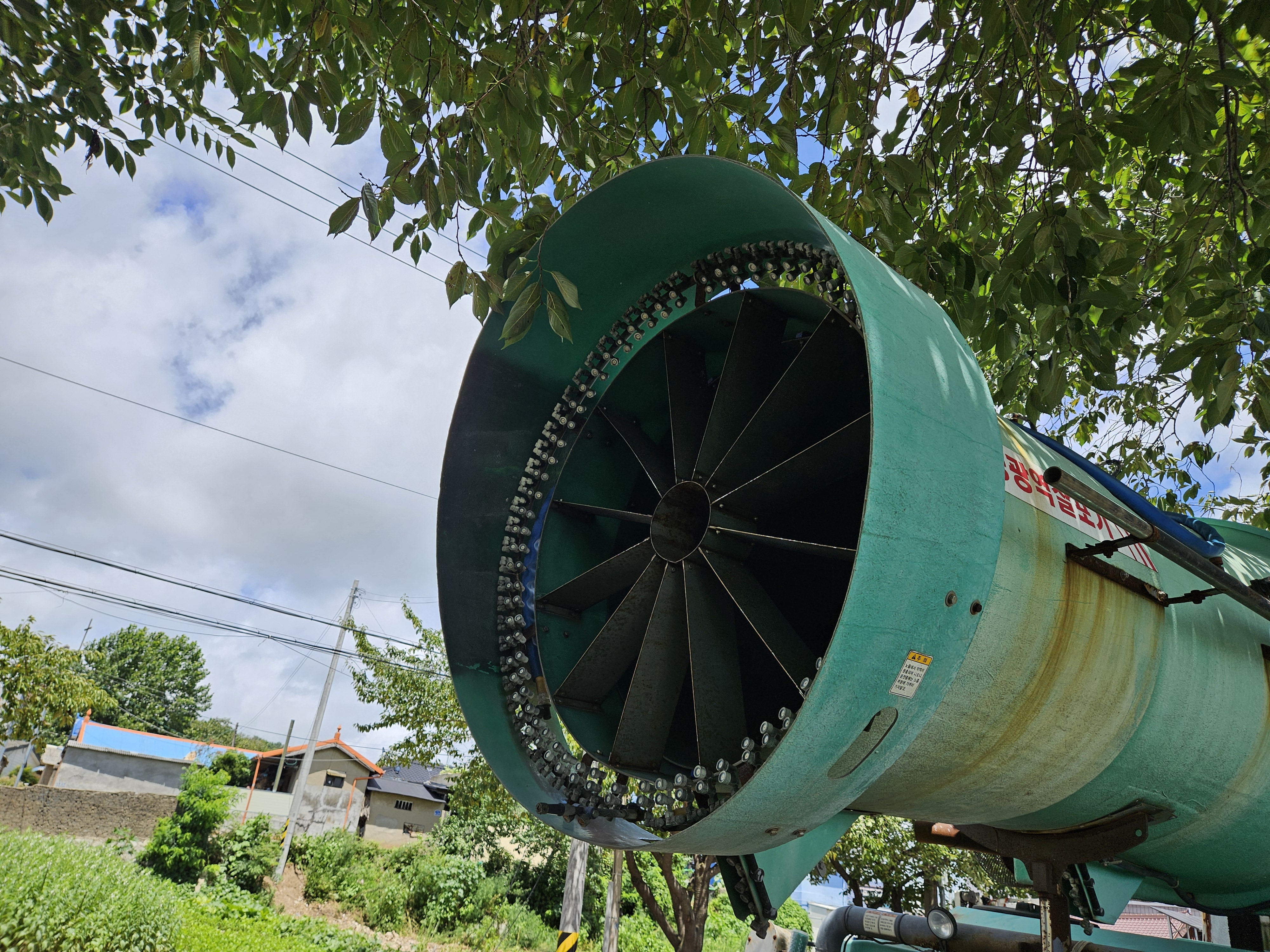 광역살포기 굵은 물줄기 대신 바람으로 날리는 분무기같은거임