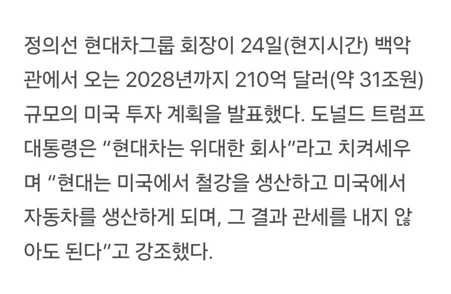 '미국 현지 생산품'만 면제임 원래 국내 생산품은 당연히 관세 안 매긴다는 거 생각하면 아예 말장난 수준임 | 25.03.28 18:04 | | |