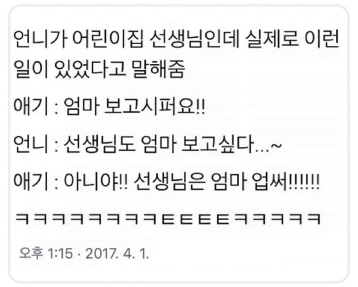 애기들 기준 어른 = 엄마아빠 돌아가신 분 | 25.03.28 20:50 | | |