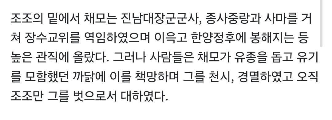 뇌물을 여러번 받아 여러번 파직당해 짬밥에 비해서 관직이 낮았다