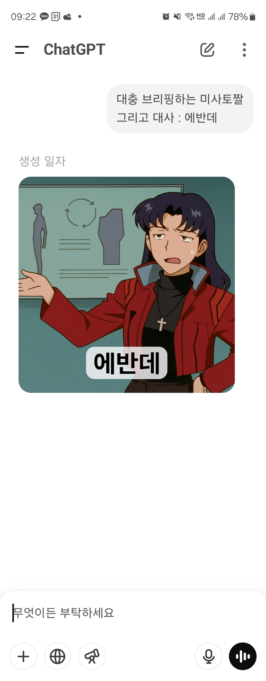 대충 브리핑하는 미사토짤 그리고 대사 : 에반데