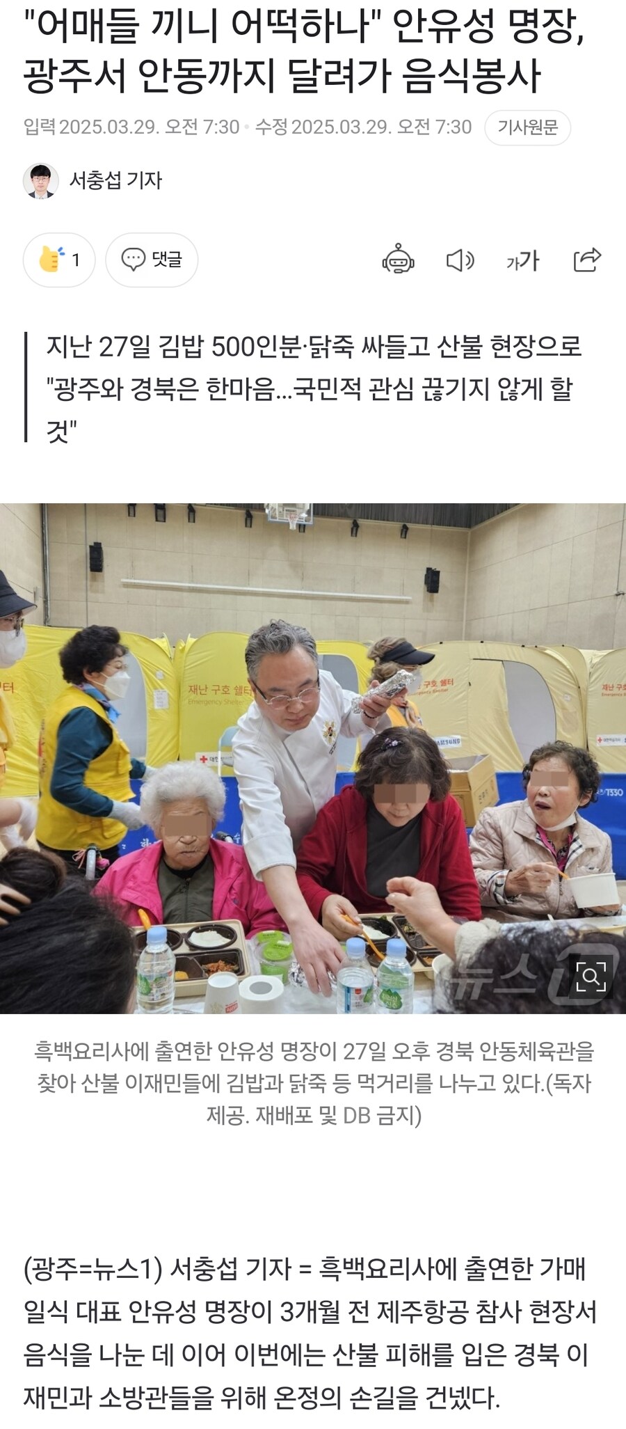 기회되면 저분이 운영하는 음식점 가보는것도 괜찮어 가격도좋고 맛남 농성역 근처에있음