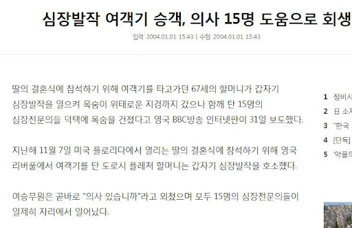 심장병관련 학괴행 비행기에서 심장질환 환자 발생한 썰이 생각나는 군