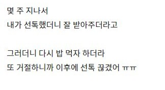 저걸 밀당으로 생각하는 사람이 있더라. 애초에 요즘 저짓하면 그냥 포기하지 | 25.03.29 22:50 | | |