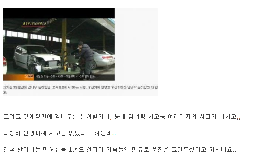 면허가 면허인데는 이유가 있는거고 저런 사람이 헤딩하는걸 아름다운 도전으로 포장하는거 그만둬야한다 저게 뭔 개 민폐야