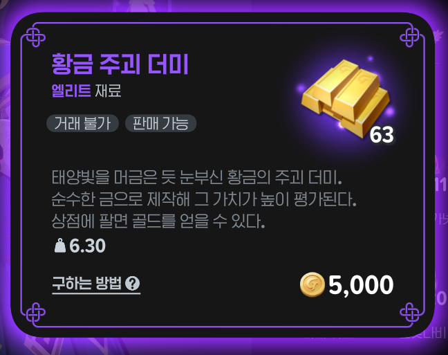 [잡담] 마비m) 황금주괴는 그냥 팔라고 주는거야?