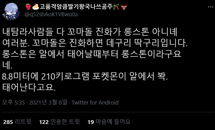 솔직히 롱스톤이나 캥카같은애들 미진화체 줘야함...