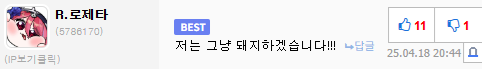 이 극악무도한 꿀꿀이!!!! | 25.04.18 20:52 | | |