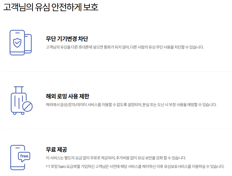 유심보호라는 이름달고 그냥 해외접속 다 차단하는 1차원적인 방식이던데, 이거하면 해외 로밍을 못함 당장 주말에 해외 나가야하는데 로밍하려면 유심보호서비스를 해지해야 해외로밍이 가능하댄다ㅋㅋㅋㅋㅋ 이새2끼들 장난하나 진짜