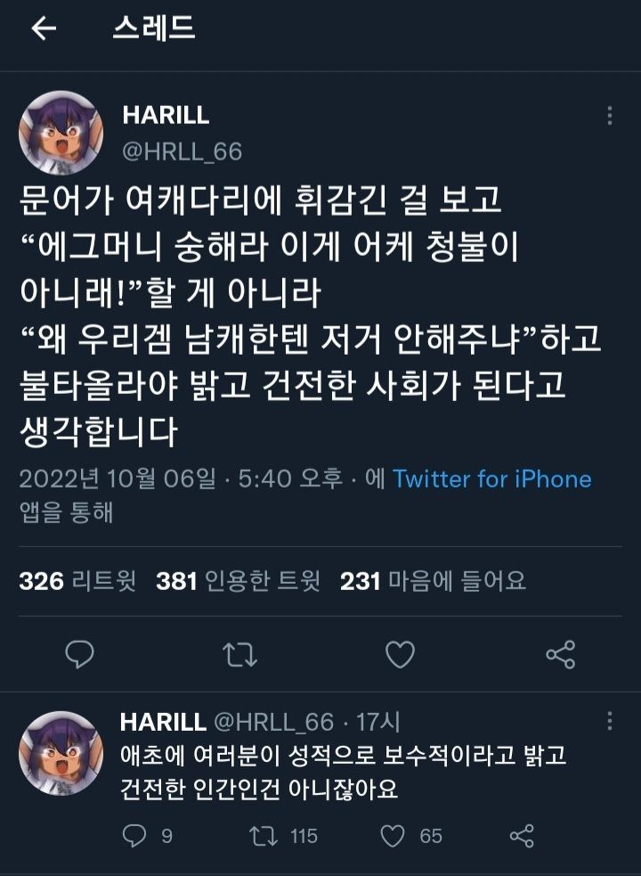 예쁘다고 하면 성칭찬이라고 불쾌해한다며 ㅋㅋ | 25.05.06 10:49 | | |