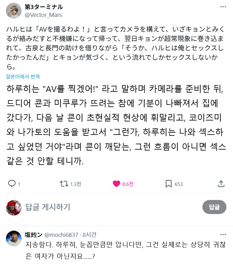 하루히는 가키보다는 썅년 혹은 ㅅㅂ년에 더 가까운 느낌인거지