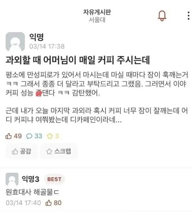 난 커피마셔도 그냥 잘자더라 그래서 달콤한거 많이 마시고 대지댐